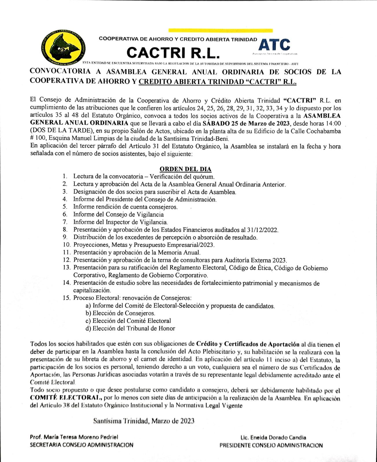 CONVOCATORIA A ASAMBLEA 25 03 2023