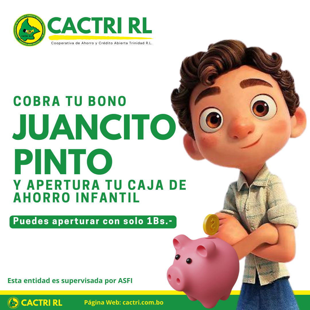 Cobra tu Juanito pinto en nuestras oficinas y aprovecha de aperturar tu caja de ahorro infantil